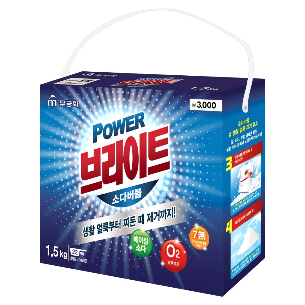 Коробки порошка хватает на 22 полноценных стирки по 7 кг белья. (Изготовлено на Производственных мощностях MUKUNGHWA в Китае, по системе контроля качества производителя)