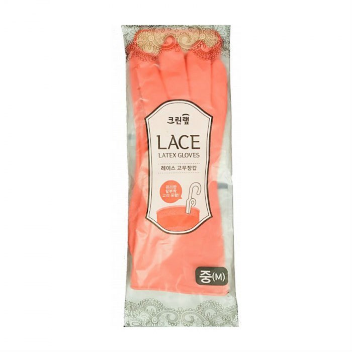 046431 Перчатки из натурального латекса LACE LATEX GLOVES укороченные с крючками для сушки коралловые размер M