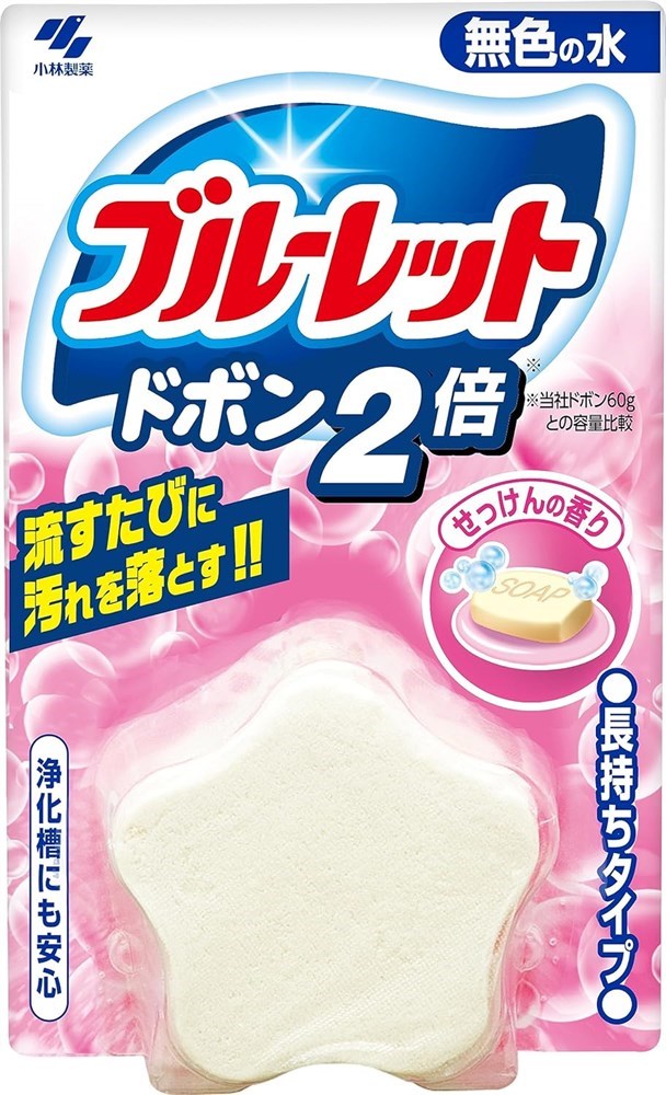 Kobayashi Bluelet Dobon Double Soap — таблетка для бачка унитаза, придающая воде нежный мыльный аромат при каждом смыве. Средство эффективно очищает поверхность унитаза, предотвращая образование налёта и обеспечивая длительную свежесть. Антибактериальные компоненты препятствуют размножению бактерий, поддерживая гигиеническую чистоту. Лёгкость использования: поместите таблетку в бачок, и она будет автоматически освежать и очищать унитаз при каждом смыве, обеспечивая комфорт и чистоту без дополнительных усилий.