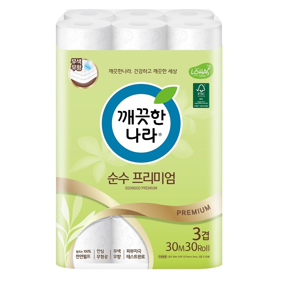 Премиальная особомягкая туалетная бумага изготовлена из качественной целлюлозы без применения флуоресцентных отбеливателей, красителей и ароматизаторов, что помогает заботиться об окружающей среде. Трёхслойная туалетная бумага обладает увеличенной впитываемостью, тройное тиснение делает её плотной. Бумага протестирована на аллергические реакции в стране-производителе. Имеет сертификаты LOHAS и FSC. Без аромата.