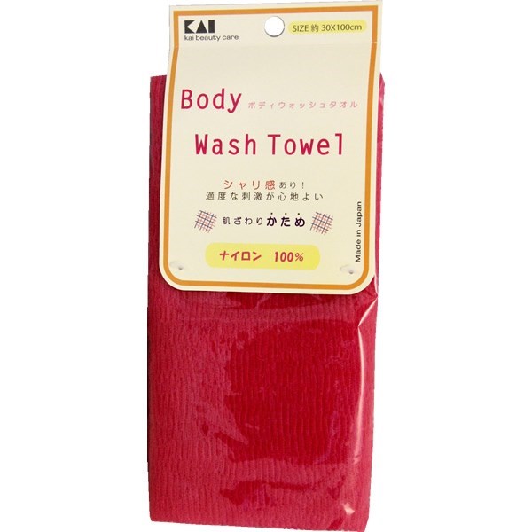 273038 KAI Мочалка для тела (с плотным плетением жёсткая), 30 см х 100 см Цвет: Малиновый