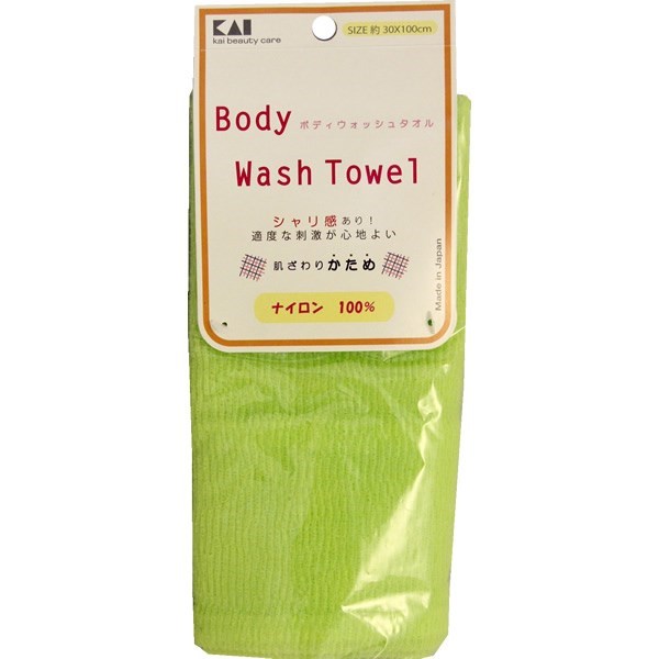 273045 KAI Мочалка для тела с плотным плетением жёсткая, 30 см х 100 см Цвет: Лайм