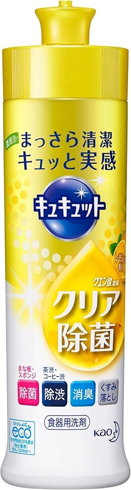 307316 KAO CuCute Средство для мытья посуды и кухонных раковин с лимонной кислотой лимон от стойких загрязнений 240мл дозатор