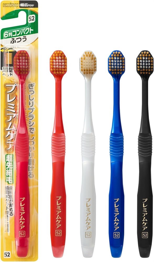 Зубная щётка EBISU Premium Care оснащена широкой головкой алмазной формы, обеспечивающей эффективное очищение поверхности зубов. Шестирядная щетина средней жёсткости со сверхтонкими концами проникает в труднодоступные места, удаляя налёт и остатки пищи. Эргономичная ручка обеспечивает комфортное использование.
