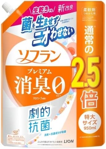 363620 LION Soflan Premium Aroma Soap Кондиционер для белья с антибактериальным и дезодорирующим эффектом, с ароматом душистого мыла, мягкая упаковка с крышкой 950мл