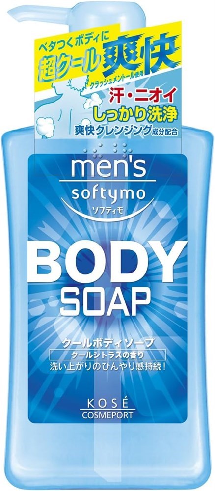 380644 KOSE Mens Softymo Cool Body Soap Мужское жидкое мыло для тела, с охлаждающим эффектом и цитрусовым ароматом, 550мл