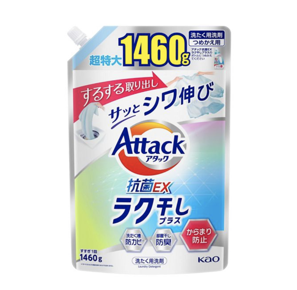 432636 KAO Attack Antibacterial EX Easy Drying Plus Жидкое средство для стирки против складок на одежде с цветочным ароматом, мягкая упаковка с крышкой 1460г