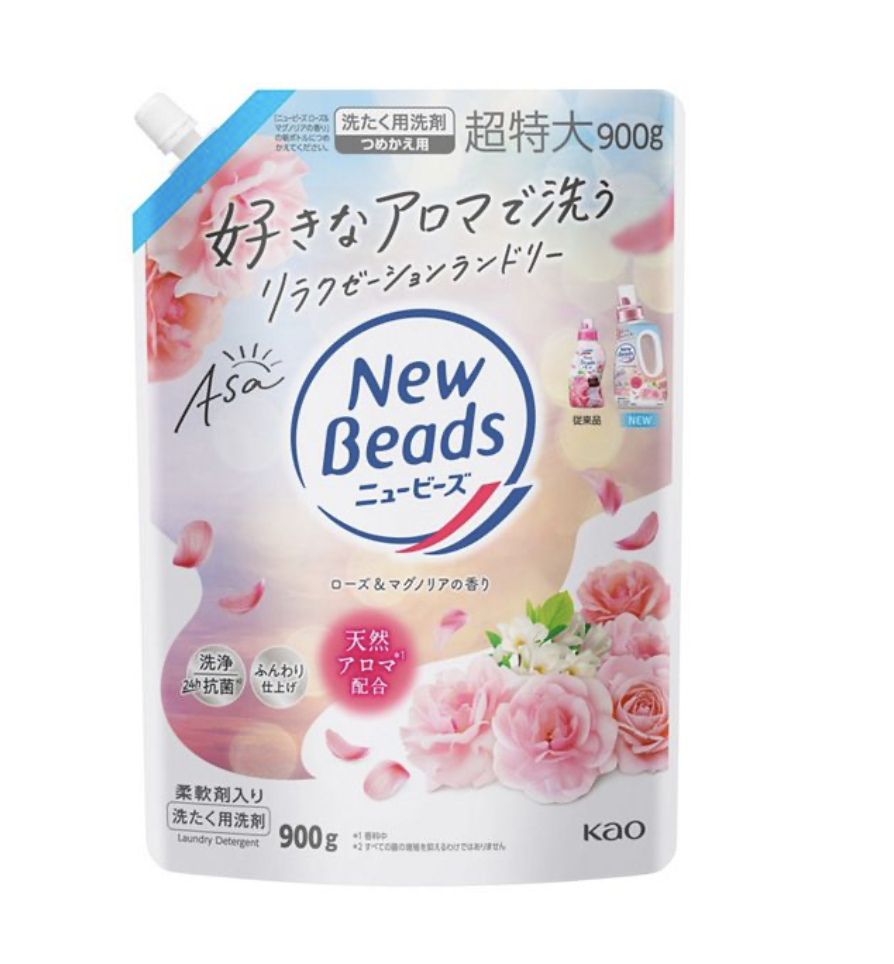 448101 KAO New Beads Asa Жидкое средство для стирки с ароматом розы и магнолии, сменная упаковка с крышкой 900г