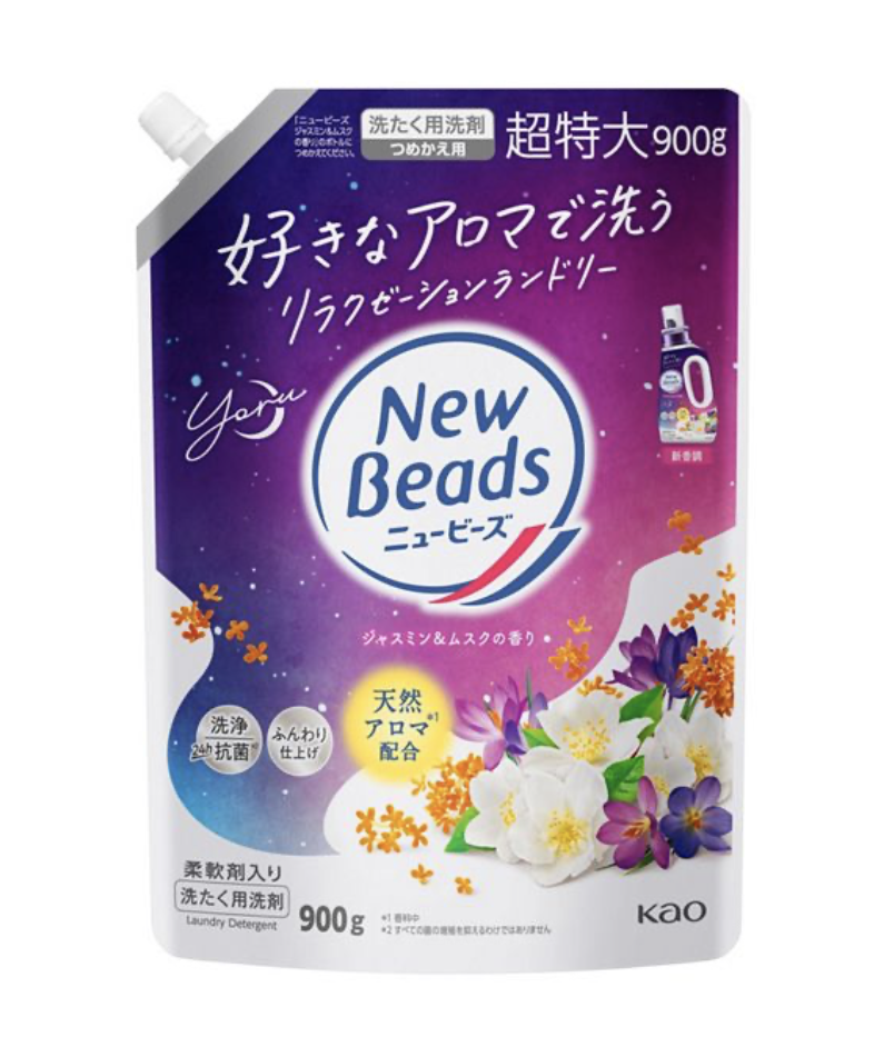448224 KAO New Beads Yoru Жидкое средство для стирки, аромат жасмина, мускуса, сменная упаковка 900г