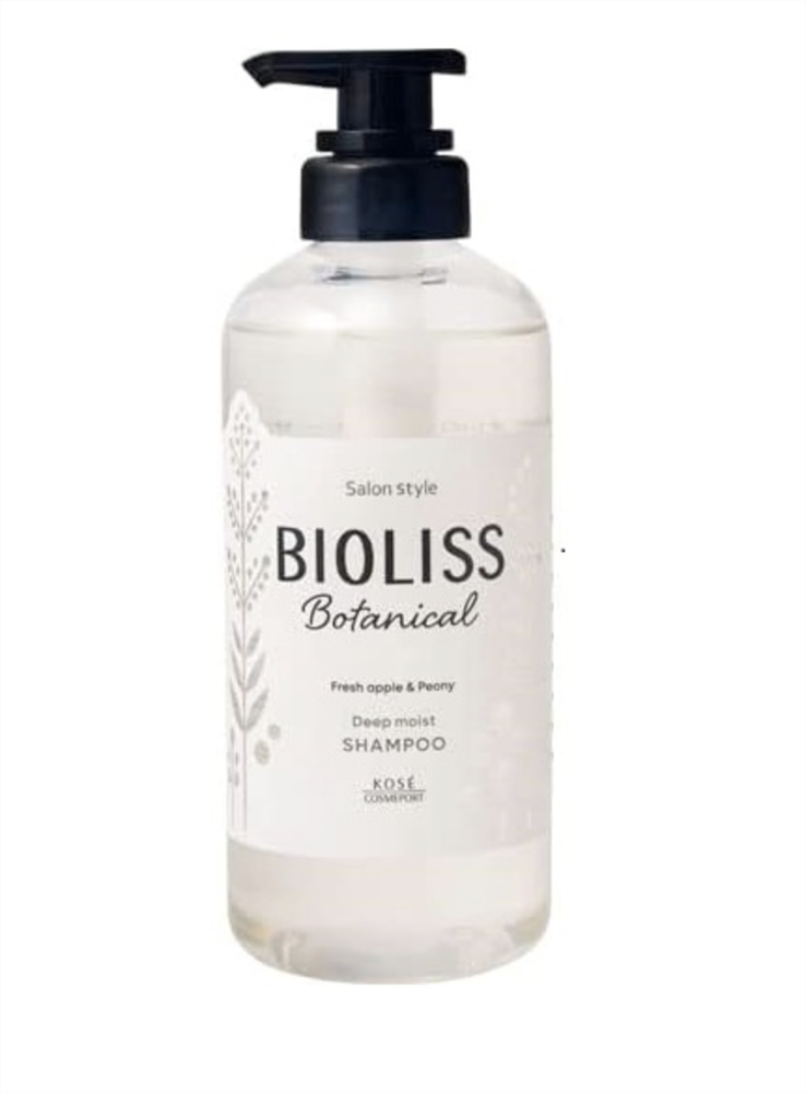 540635 KOSE Bioliss Botanical Shampoo Deep Moist Глубокоувлажняющий шампунь для волос с органическими маслами и растительными экстрактами, с ароматом свежего яблока и пиона, 480мл
