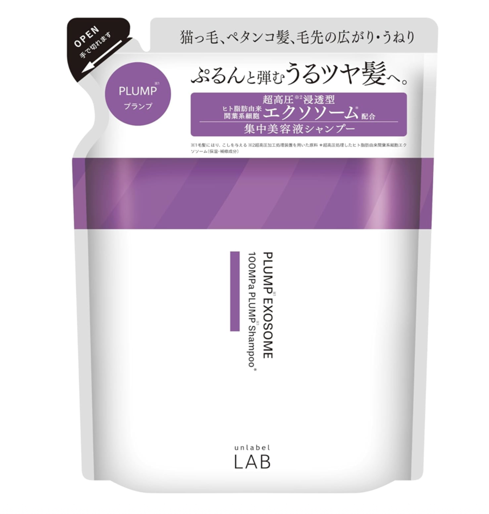 UNLABEL LAB EX Volume Up Hair Shampoo — японский шампунь для придания густоты и упругости тонким, мягким и быстро теряющим объём волосам. В центре формулы — экзосомы Plump и укрепляющий комплекс с сжималеиновой кислотой, работающие на глубокое восстановление структуры и плотности прядей.