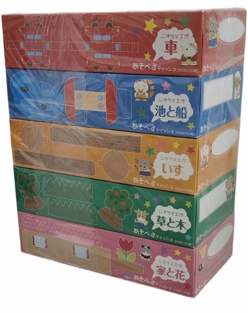 990149 ID Двухслойные бумажные салфетки "Asoberu" с коробкой для вырезания миниатюр животных и горы Фудзи 150 шт. х 5 пачек